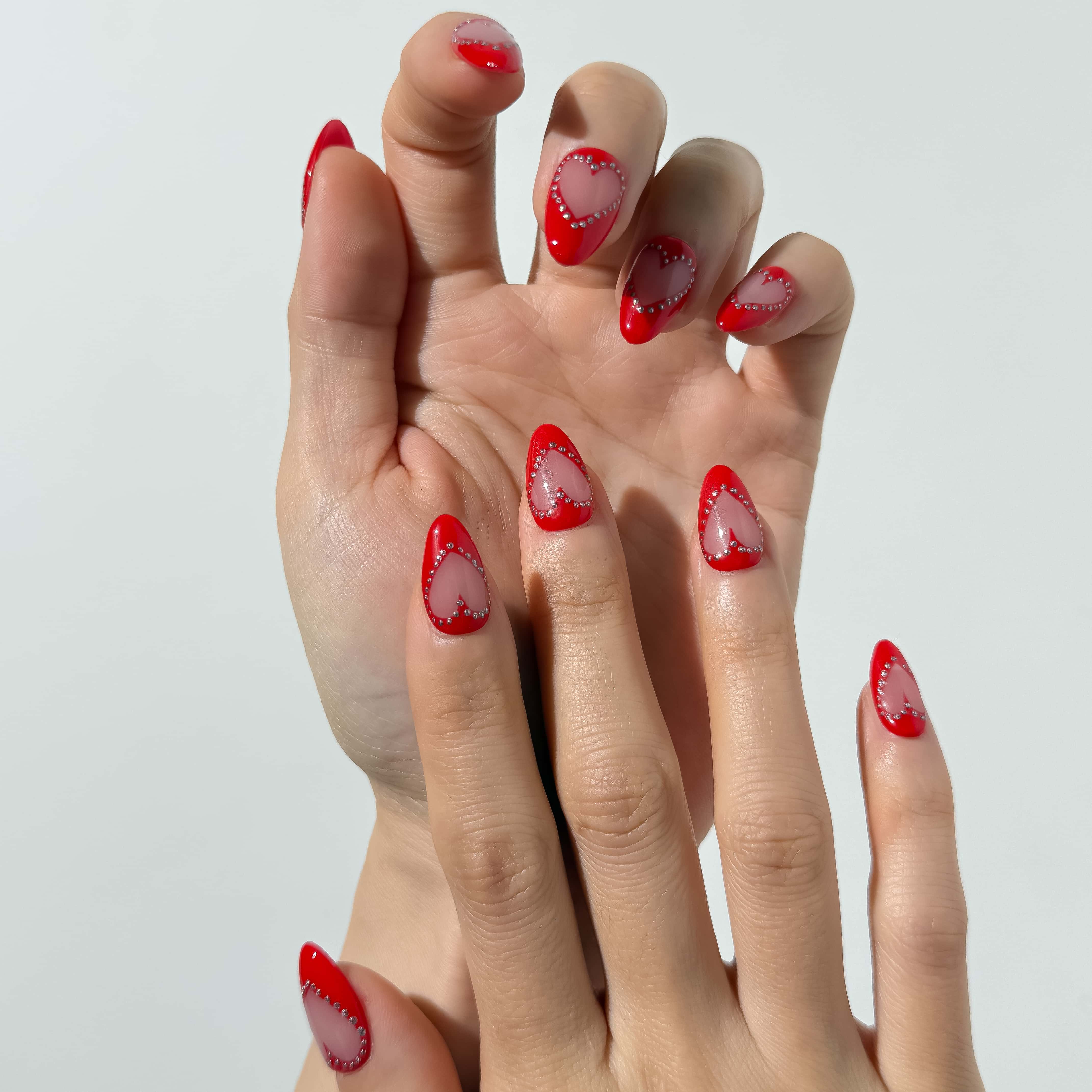 Crafted in a universally flattering almond shape, these nails are the perfect accessory for date nights, anniversaries, Valentine's Day, or any occasion where you want to add a touch of passionate romance and polished grace to your ensemble. Easy to apply and reusable, enjoy salon-quality elegance in minutes.